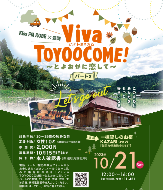 Kiss FM KOBE×豊岡市のコラボイベント第二弾となった10月は、但東町にある古民家 KAZABI(かざび)さんで阪神間の男性と豊岡の女性合わせて17名が集まりました。