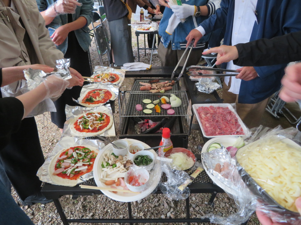 手作りピザは、好きな具をトッピングしてピザ窯で焼いて作りました。