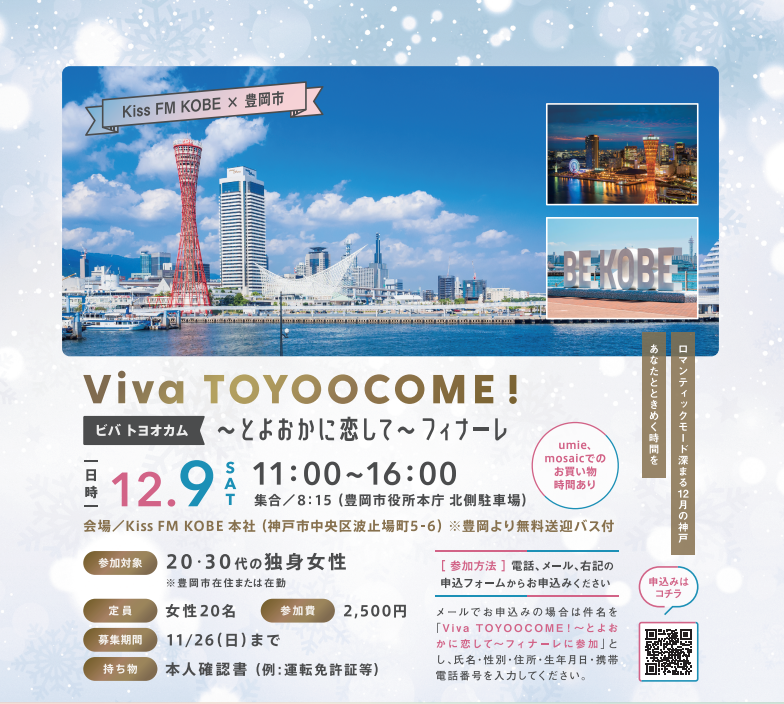 Kiss FM KOBE×豊岡市のコラボイベント『Viva TOYOOCOME!~とよおかに恋して~』のラストということで、8月、10月の同イベントの参加者さんたちの再会と、新しい参加者さんの出会いの場を兼ねてオフ会を行いました。