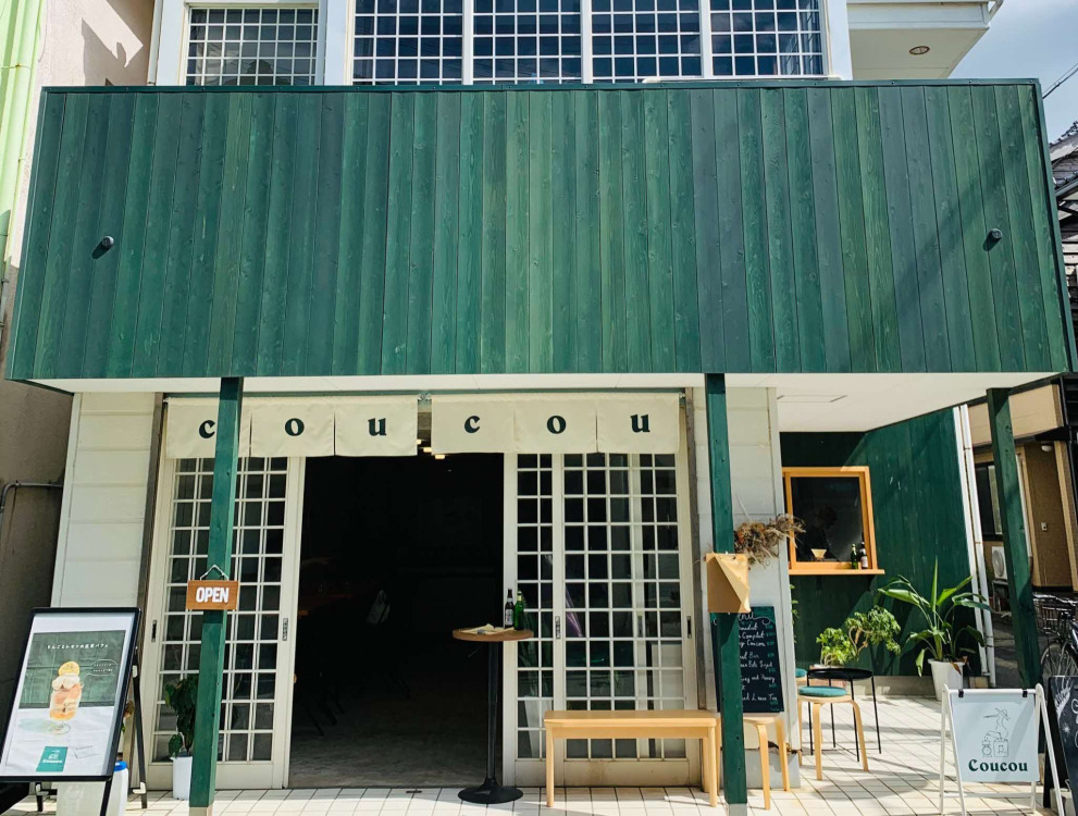 うみ街に似合う爽やか緑の屋根が可愛いお店、Cafe Coucou(カフェ ククー)さん。