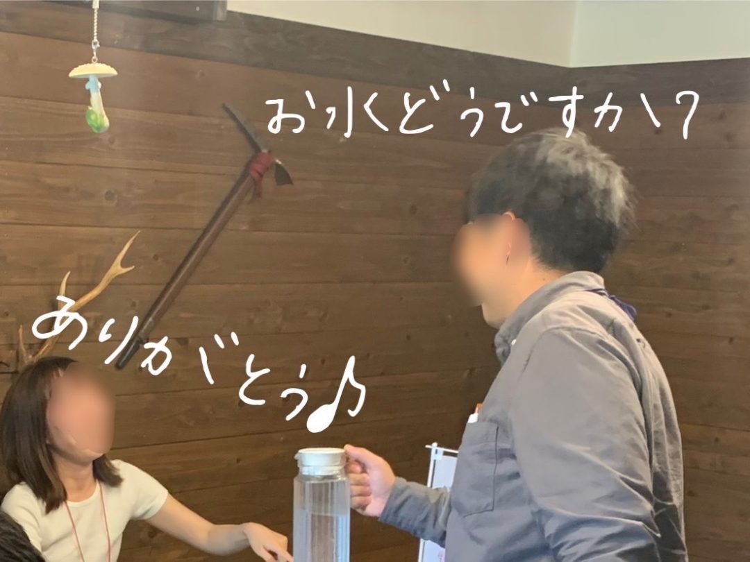 みんなの取り皿やおしぼりを取りに行く人、水を注いであげる人、まだあまり話せていない人に話しかける人など。