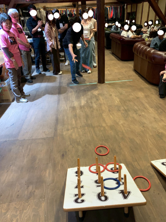 マッチング集計をしている間、チーム対抗輪投げ合戦でも盛り上がる。