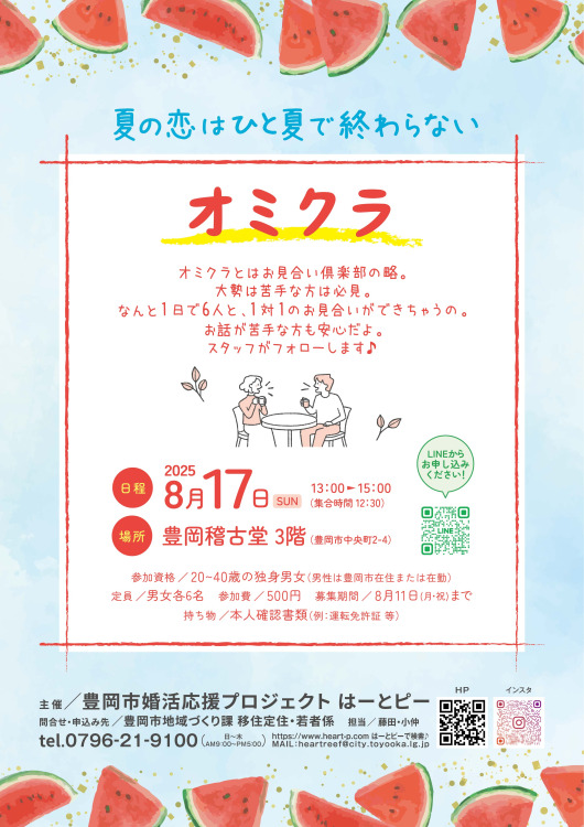 オミクラとは「お見合い倶楽部」の略で、1対1のお見合いが1日になんと6人の方とできちゃう優れもの!