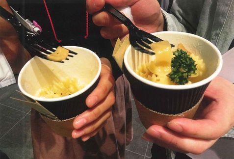 それは、ショートパスタの中にオレンジとグリーンのハート型のパスタが少量入っており、カップルで同じ色のパスタが入っていた人が一緒に申告すれば、ライスコロッケがプレゼントされるというもの。