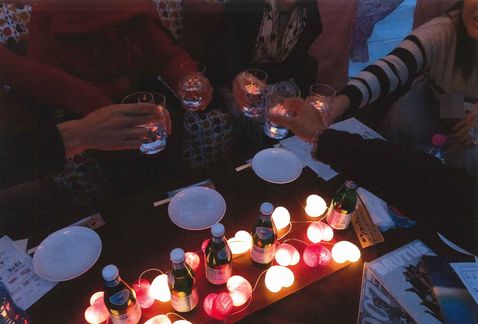 テントの中のグループさんは少し寒くなってきたせいか温かいスープの登場で歓喜の声を上げる。