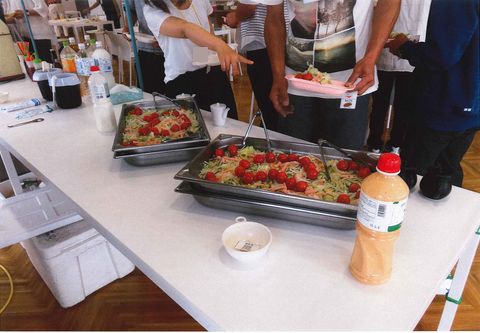 天候に左右されず「縁日」を楽しんでもらおうと企画し、市役所食堂内で、株式会社健食ライフサービスさんに「屋台を並べてください」とご無理をお願いしたところ、快く引き受けてくださいました。