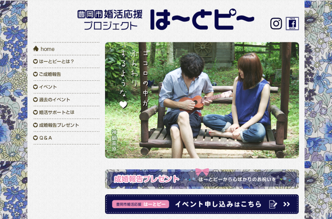 豊岡市が運営するハートリーフでは、1対1のお見合い「omiai事業」やマッチングイベント「はーとピー」など、結婚を望む男女に出会いの機会をご提供します。